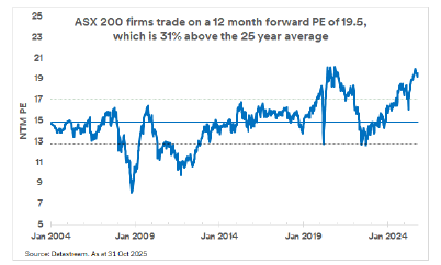 Turning to Australia, here’s the market “price to earnings” (PE) courtesy of Martin Conlon and the team at Schroders.